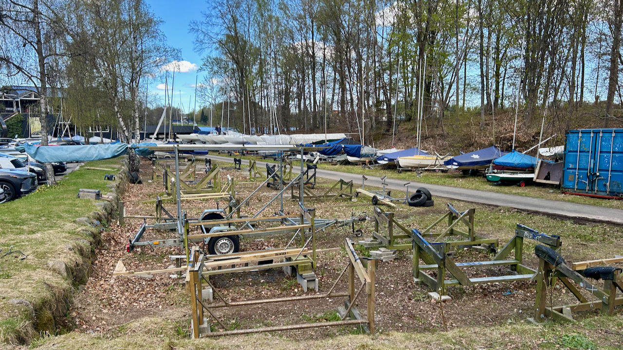 Bådstativerne skal flyttes ind i "Fortet", så der bliver plads til at køre joller på plads på bådpladsen.