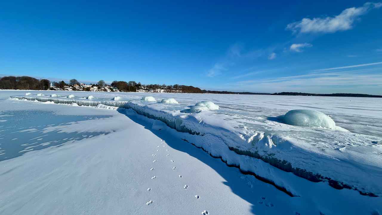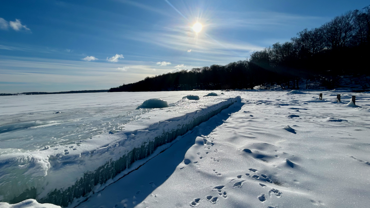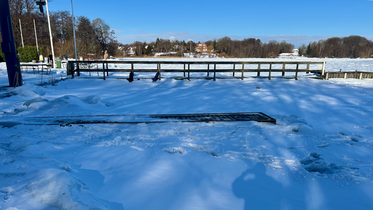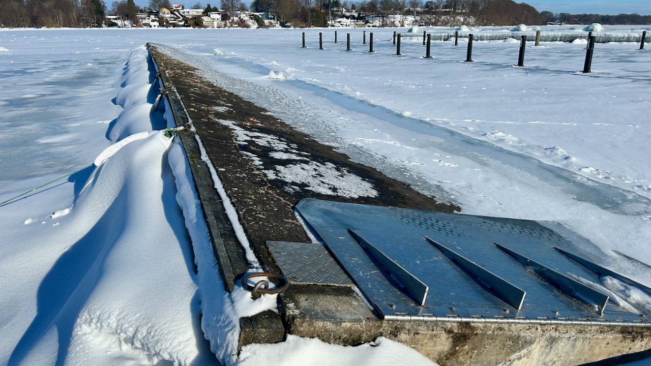 Vinteren her i februar 2026 har virkelig holdt sit indtog i Farum Sejlklub og på Furesøen, som er helt frosset til.