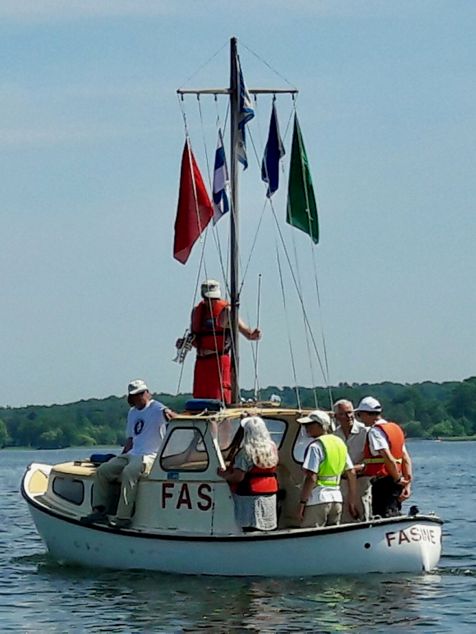 Dommertjansen klares bedst med 2 eller 3 mand ombord på FASINE. (Tid, Flag, Horn). og opbservertør og skriver ved målgang.